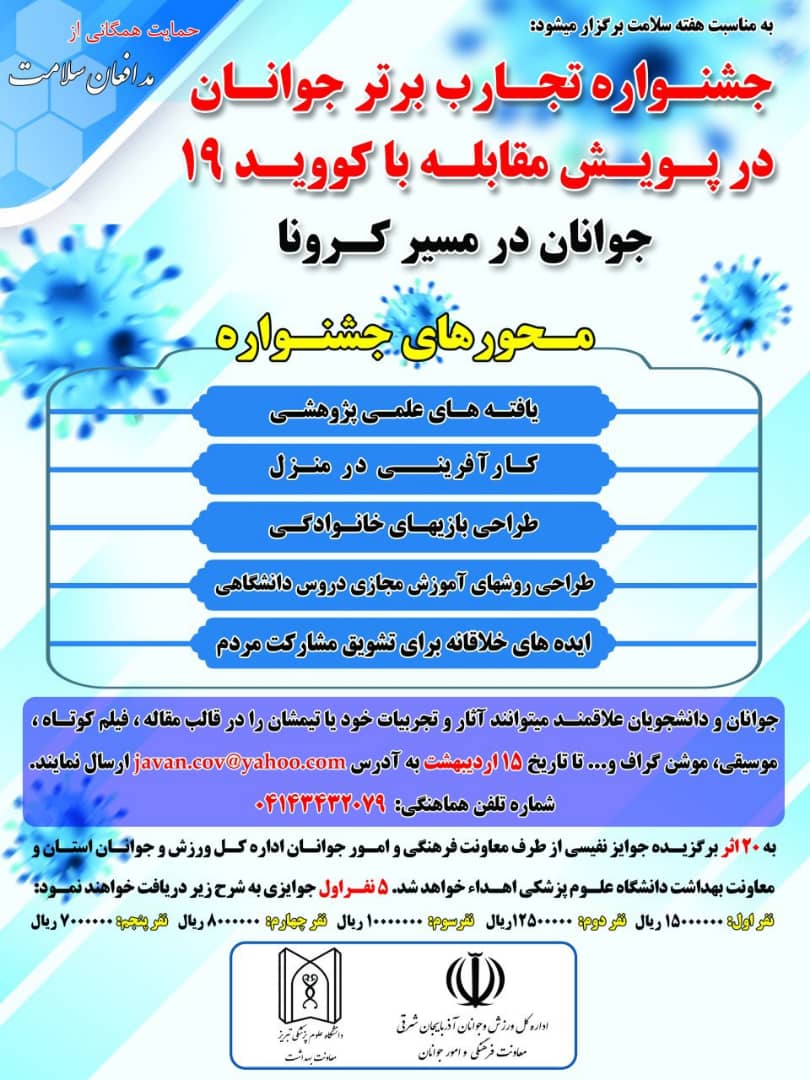 جشنواره تجارب برتر جوانان در پویش مقابله با کووید 19 با همکاری مرکز بهداشت و ورزش جوانان استان آذربایجان شرقی