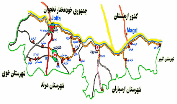 شهرستان جلفا شمالی ترین شهر استان آذربایجان شرقی و یکی از شهرهای شمالی کشور می باشد که به صورت نوار باریکی از شرق به غرب کشیده شده و از قسمت شمال به واسطه رود ارس با دو کشور جمهوری آذربایجان (نخجوان)و ارمنستان همسایه بوده و دارای دو پست قرنطینه مرزی جلفا و نوردوز می باشد.